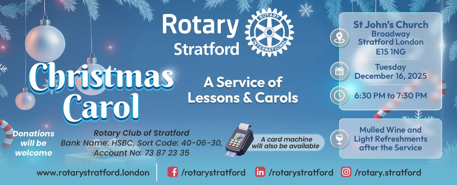 St John’s Church, Broadway, Stratford, London E15 1NG St John’s Church, Broadway, Stratford, London, United KingdomA Service of Lessons & Carols Join us for a heart-warming evening of festive music and reflection at the Rotary Stratford Christmas Carol Service. Set in the beautiful surroundings of St John’s Church, Stratford, this special evening promises joy, community spirit, and the true meaning of Christmas. 🗓 Date: Tuesday, December 16, 2025 🕡 Time: 6:30 PM to 7:30 PM 📍 Venue: St […]